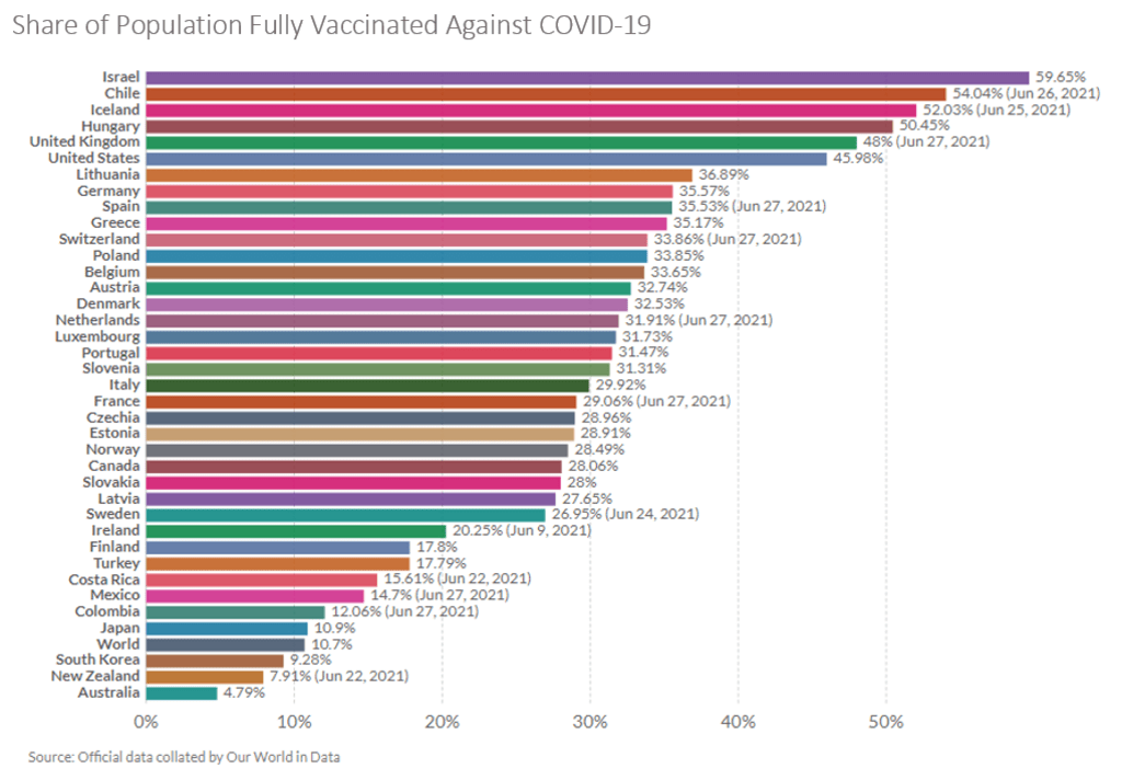 Australia Ranked Dead Last In The OECD For Vaccination Rates June 30, 2021 The short fallings of Australia’s vaccine rollout are becoming more and more obvious, as new data shows we are ranked dead-last amongst OECD countries. With less than 5% of the population vaccinated, Australia is one of the developed world’s worst performers. Currently, vaccination rates are being led by Israel, Chile, and Iceland, who have 60%, 54%, and 52% respectively of their population fully vaccinated. Despite their large size, even the US has over 45% of their population fully vaccinated. New Zealand, with 7.9% of the population fully vaccinated, is second last. Unfortunately, Australia only backed a few vaccines unlike most OECD, and have experienced supply issues with the successful candidates. Now, the Delta variant is running rampant in the largely unvaccinated population. If Australia wants to be a COVID-19 success story again, we need to get vaccinated, and quickly. Sove CPAP Clinic is a leading Australian provider of Respiratory, Sleep Disorders, Cardiology and PPE services and products. Based in Sydney, it has a network of 40 clinics nationwide.